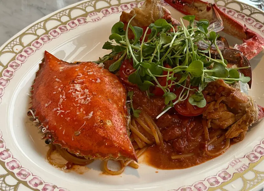 Crab Rose Pasta: A crowd favorite, this dish features a whole crab nestled in a creamy yet tangy rosé sauce, served over perfectly al dente pasta.