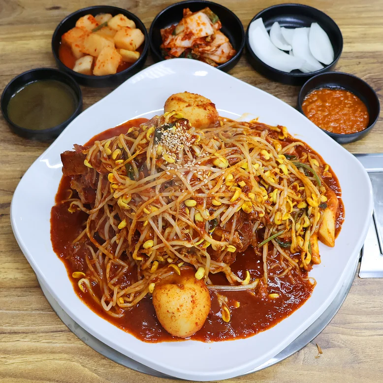 For those who enjoy bold, spicy flavors, bbyeojjim is the way to go. This dish features meaty pork bones smothered in a rich, slightly sweet yet fiery sauce, topped with an abundance of crunchy bean sprouts that soak up all the delicious flavors. The portion size is generous, making it an excellent option for sharing.