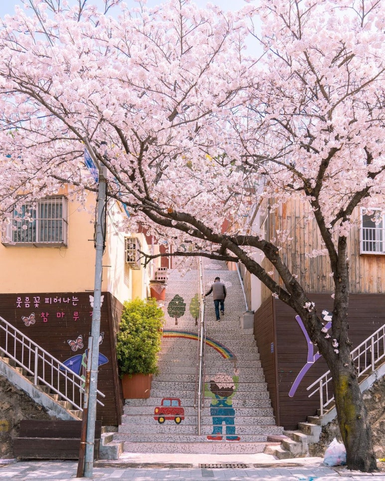 Why Visit?Dakbatgol Mural Village is a charming hillside neighborhood known for its steep alleys adorned with vibrant murals. As you climb the stairways, you'll be met with a whimsical mix of colorful street art and pink cherry blossoms in full bloom. The village’s monorail system not only assists residents but also enhances its fairy-tale-like atmosphere.