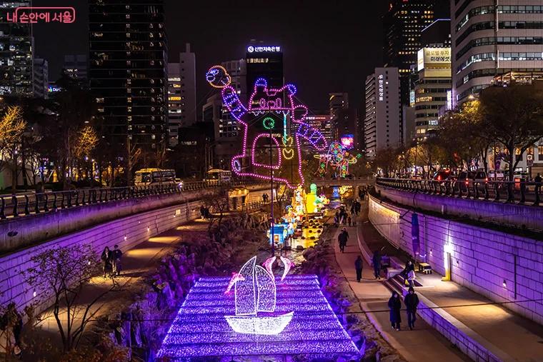 • Location/Highlights: Cheonggye Plaza. Features a large tree, LED sculptures, photo zones, a video letter contest, and a mini-train ride experience.