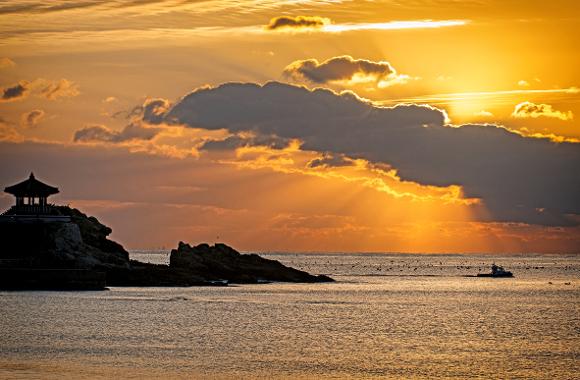 Follow the coastal walking path to reach the rocky shore of Orangdae Park, where the sounds of breaking waves and seabirds greet you. A prominent structure here is the Yongwangdan Shrine (Dragon King Shrine), which stands proudly on the rocks to greet the rising sun. Though it’s known for its often high, crashing waves, on calm days you might be lucky enough to witness the rare "Omega Sunrise" (when the sun looks like the Greek letter Omega as it touches the horizon). The solemn shrine, dedicated to the safety of the sea, blends harmoniously with the wishes made by sunrise viewers, creating a truly unique photo spot.