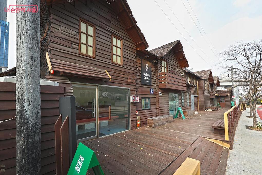 While the exterior still retains the look of old shanty houses, the interior now boasts a modern atmosphere designed as a resting space where visitors can experience nature and ecology. The walls feature illustrations of over 100 species of animals and plants that inhabit Cheonggyecheon. With large windows and wooden benches, it has been reborn as a healing space where you can sit comfortably and gaze at the stream.