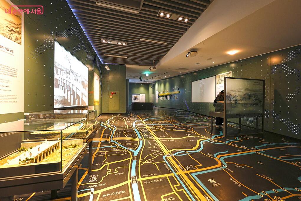 The museum, which spans from two basement levels to four floors above ground, consists of a permanent exhibition hall, a special exhibition hall, an education room, and a small auditorium. The viewing route is unique; visitors take an escalator located outside the building directly to the 4th floor to begin the permanent exhibition. Walking down the gentle ramp from the 4th floor to the 1st floor, you can naturally explore the history of Cheonggyecheon, dating back to before Seoul was designated as the capital of the Joseon Dynasty.