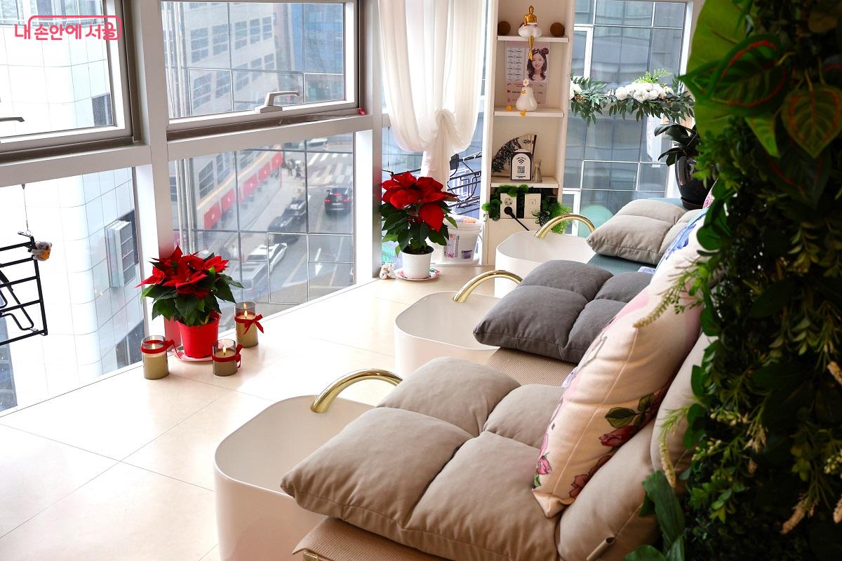 After a long day of walking, your feet deserve a treat. Myeongdong Beauty is a unique therapy spot where you can enjoy a relaxing foot bath while looking out at the open sky and the vibrant streets below.