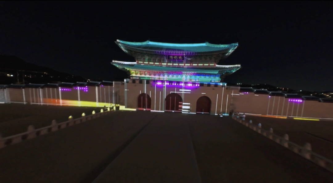 The main event features a massive media facade projected onto the Gwanghwamun gate and surrounding walls.