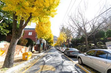 Near the elementary school is Mandeok Lego Village. The name immediately makes sense when you see the vibrant, colorful roofs of the buildings. Built in 1986, the collective housing's bright, varied rooftops resemble toy blocks, earning it the name "Lego Village."