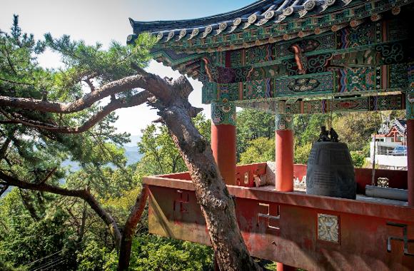 For a true city escape, head to Byeongpungam Seokbulsa Temple. Named 'Byeongpungam' (Folding Screen Rock) because the sheer cliffs surround the temple like a protective screen, it offers a stunning view overlooking the entire Mandeok-dong area.
