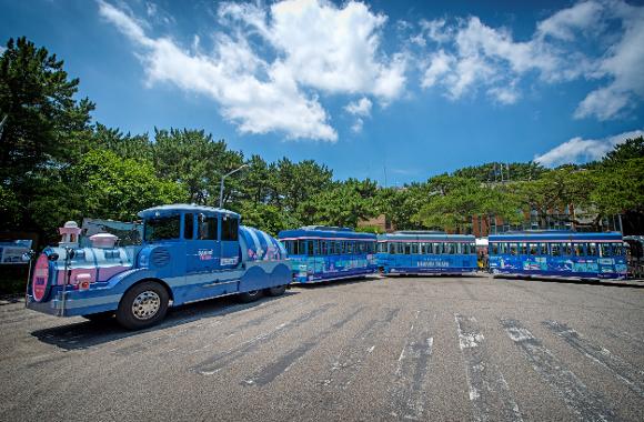 The train route passes the Taewon Pebble Beach and the Namhang Viewing Point before reaching the main attractions.