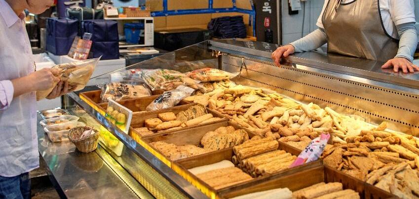 These movable stalls, alongside the permanent shops, quickly set up small, round tables and low plastic chairs, transforming the long market aisle into a communal dining hall. The variety of food explodes, featuring everything from Korean and fusion dishes to international snacks.