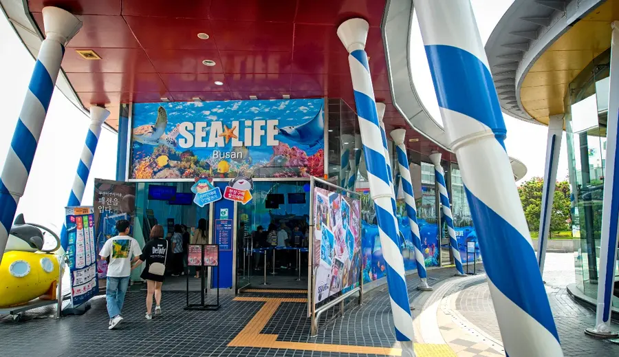 Located right at the entrance of Haeundae Beach, SEA LIFE Busan is a massive underground aquarium where you can meet over 10,000 marine animals representing 250 different species. The facility is renowned for its 80-meter-long seabed tunnel and two massive main tanks, divided into eight unique thematic zones.