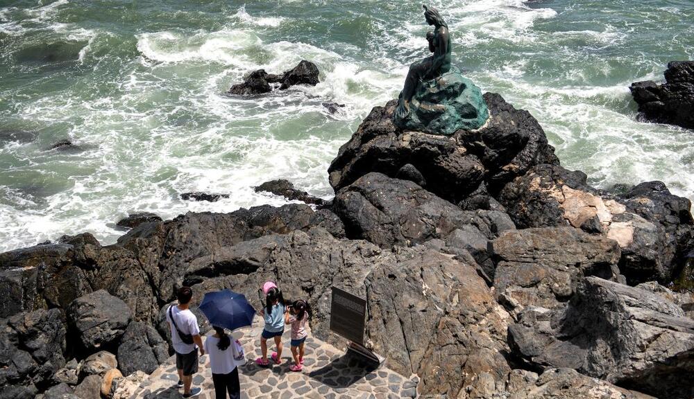As you pass the first observation deck, you will spot a solitary statue sitting on the rocks by the sea. This is the Statue of Princess Hwangok.