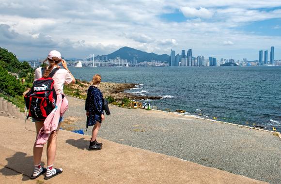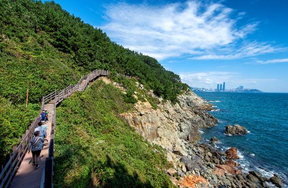As you hike along the cliffside, the view is spectacular. To your side, you have ancient rock formations; across the bay, you see the modern marvels of the Gwangandaegyo Bridge, Marine City skyscrapers, Dongbaekseom Island, and Haeundae. Seeing the glittering city from the vantage point of a wild cliff is a unique Busan experience.
