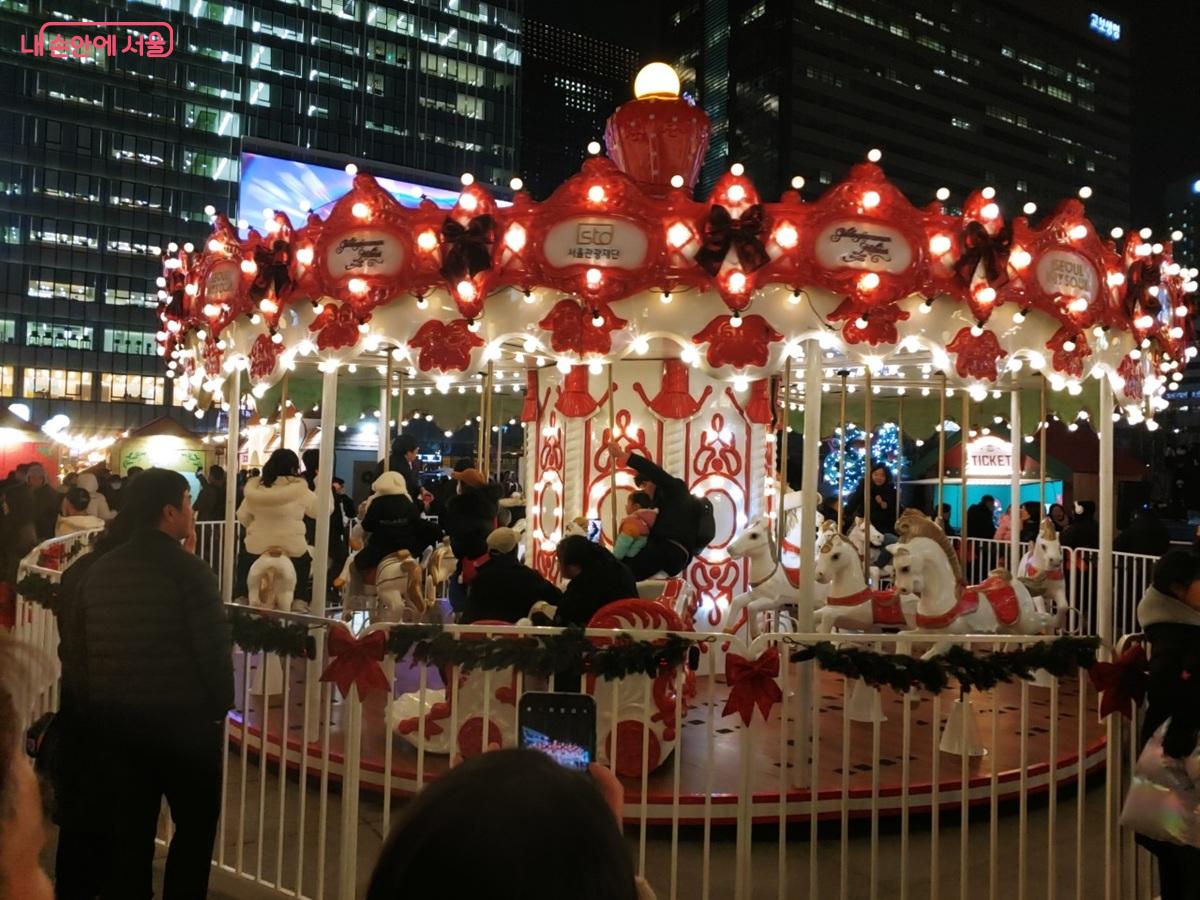 • The Red Carousel: The star attraction is the beautifully red-themed carousel. It creates a warm, festive atmosphere right in the heart of the city—a perfect backdrop for your holiday photos!