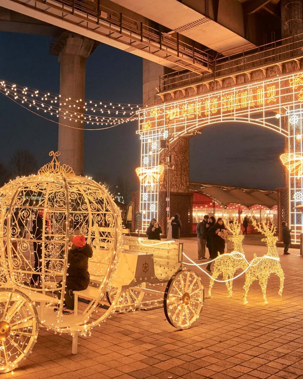 • Food Zone: Located under the Cheongdam Bridge, 16 food trucks will serve warm winter street food and desserts. Crucially, the organizers have set up an Indoor Dining Zone, so you can eat your hot food comfortably.
