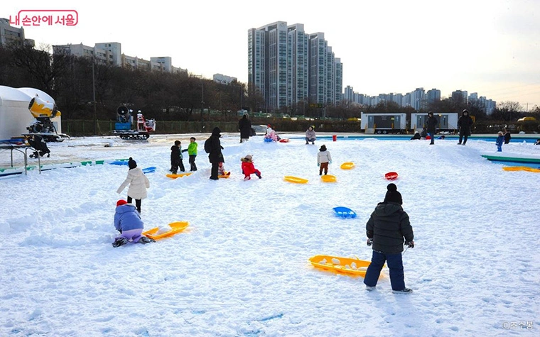 The Han River Sledding Hills offer a convenient, low-cost opportunity to enjoy winter recreation right in the city.