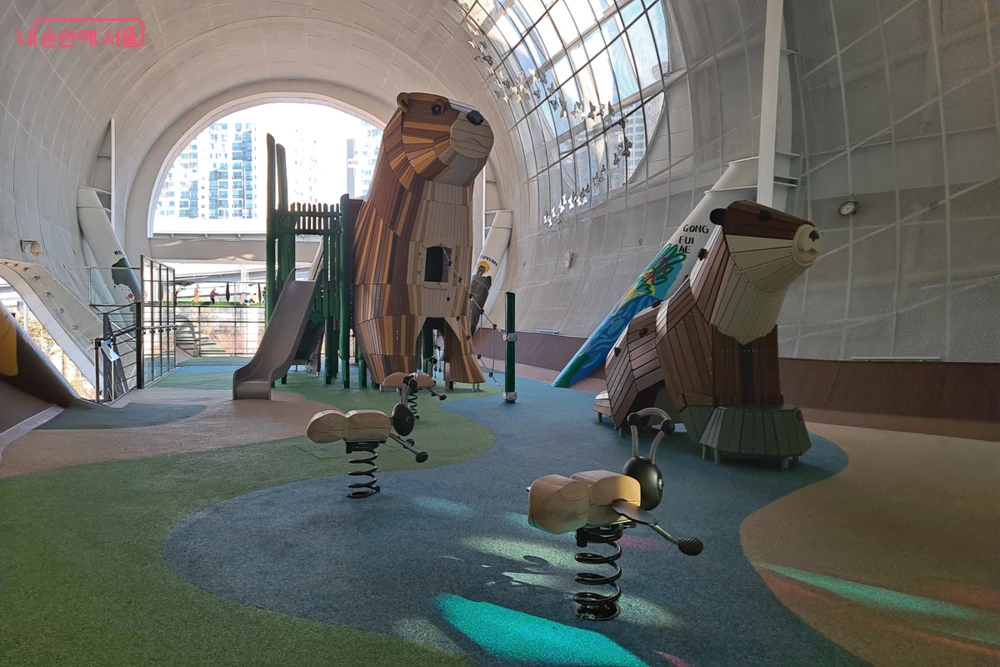 In the "head" section of the structure lies a playground dedicated to the Otter, a symbol of the Han River's ecological restoration. This eco-friendly space features large-scale play equipment and safe, cushioned flooring designed specifically for younger children to play without restrictions.